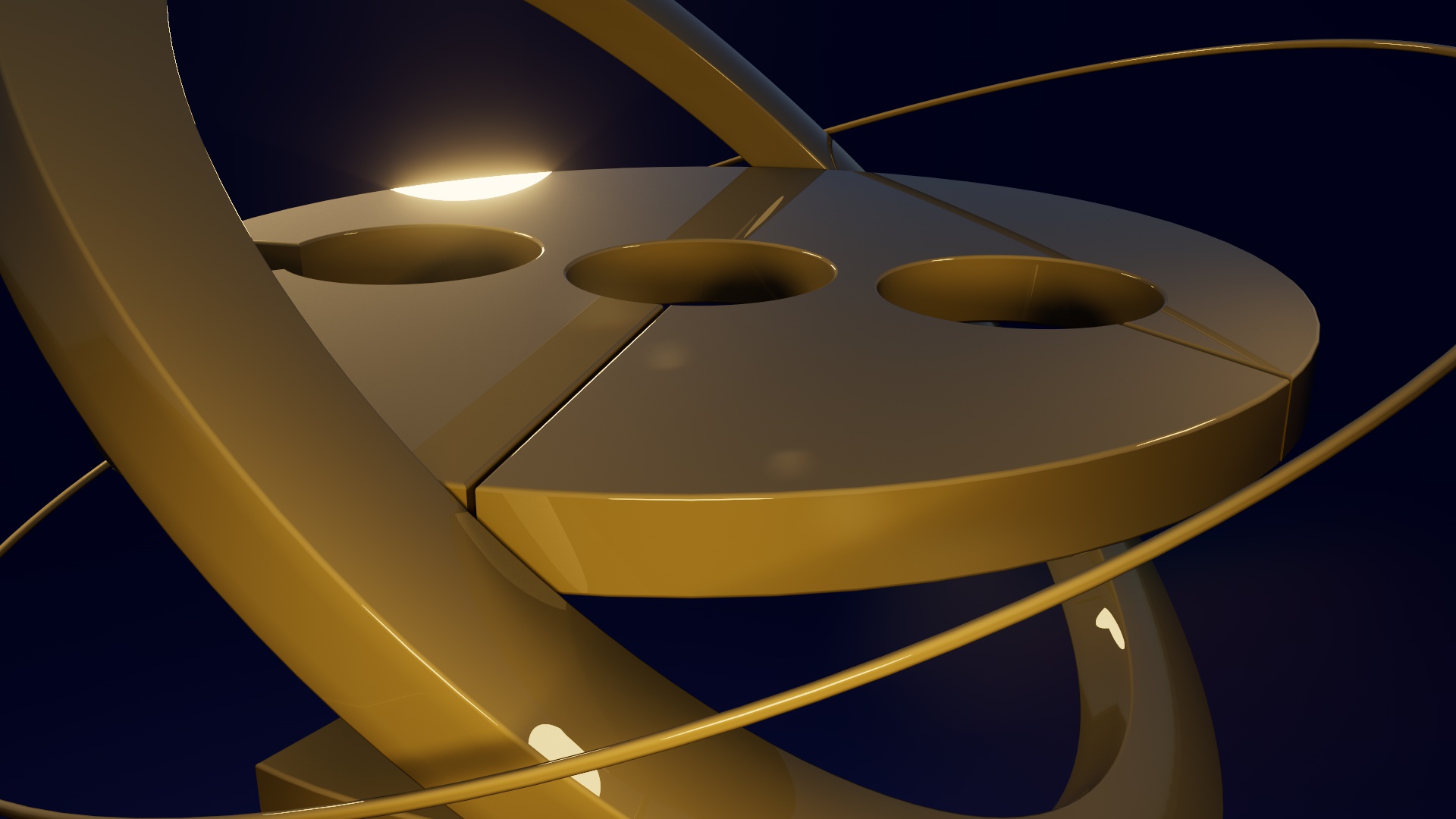 I began working in Cinema4D to create the 3D motion pieces. I focused on the title sequence first, since I felt that would be the most striking and compelling piece of the video. I created the scene and rendered a few test frames of the ring spinning animation.