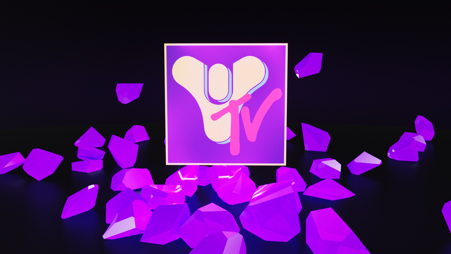 While I think this fits the aesthetic that I had panned for originally, I wasn’t really happy with it. If the bumper was going to be the first thing people see in the video I wanted it to be more interesting. I did some brainstorming and eventually came up with the idea of an engram cracking open to reveal the DestinyTV logo. Something that could be created rather easily with the shatter tool in C4D. Below is the DestinyTV logo (heavily referencing MTV’s) and a test frame of the engram.