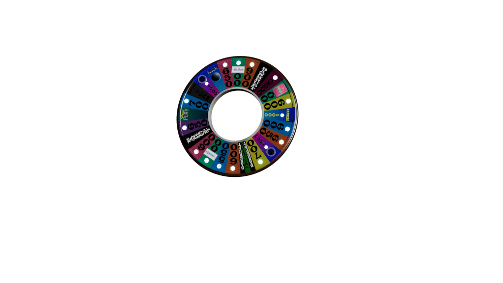 With these two completed, I began collecting footage and creating the overall structure of the video, but I wasn’t done with C4D yet. After getting some clean plates for the Wheel of Fortune spin, I began working on renders for the wheel. This was one of my favorite parts of the video; referencing the wheel and updating it to make it fit within Destiny’s world was great. Swapping the dollar symbols for glimmer and ‘1/2 a car’ turning into ‘1/2 a sparrow are two of my favorite touches. Below are the renders of the wheel and the game board intended for overlaying on top of footage.