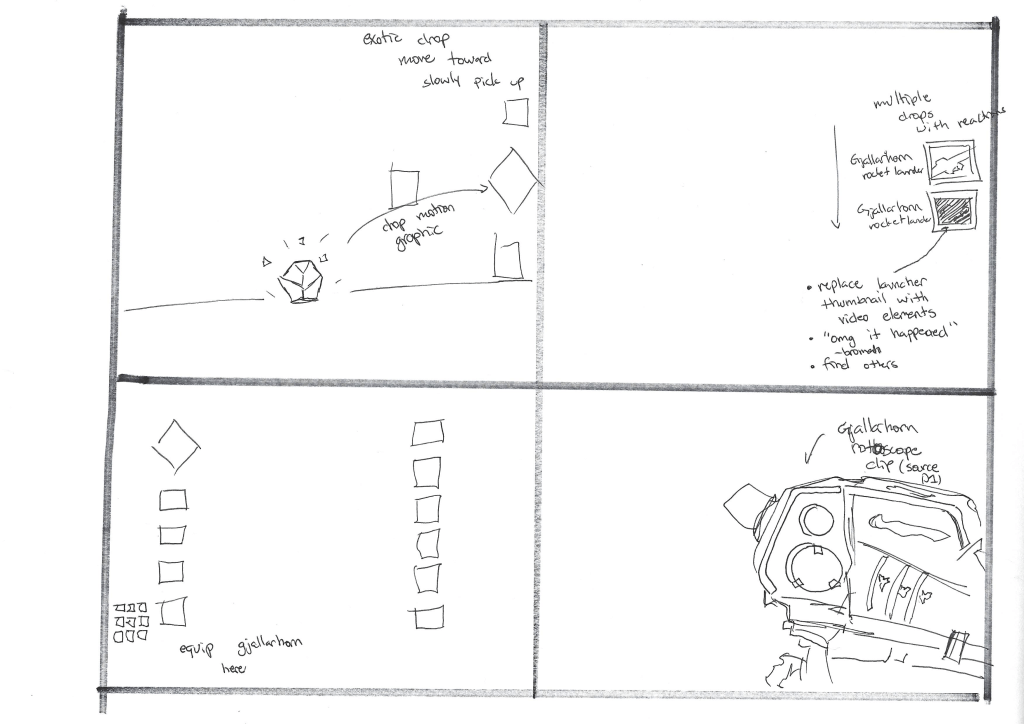 I knew that if I wanted to sell the idea that Gjallarhorn had returned to Destiny 2, I would need to do a hand full of menu redesigns, motion graphics, and rotoscoping. I started with a short storyboard, and then began to execute on the edits.