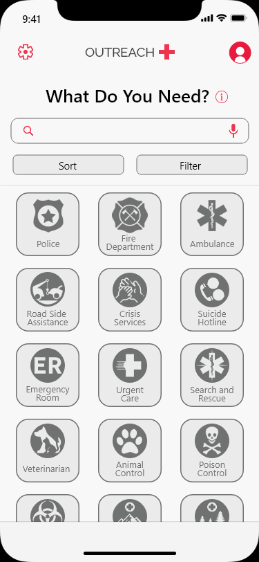 After some ideation, I came up with the idea for Outreach, what if in an emergency a person could contact the most appropriate service that they needed in that given moment? An app that presented the user with a variety of different emergency services they they could choose from would be a great start to get the person the assistance that they needed.